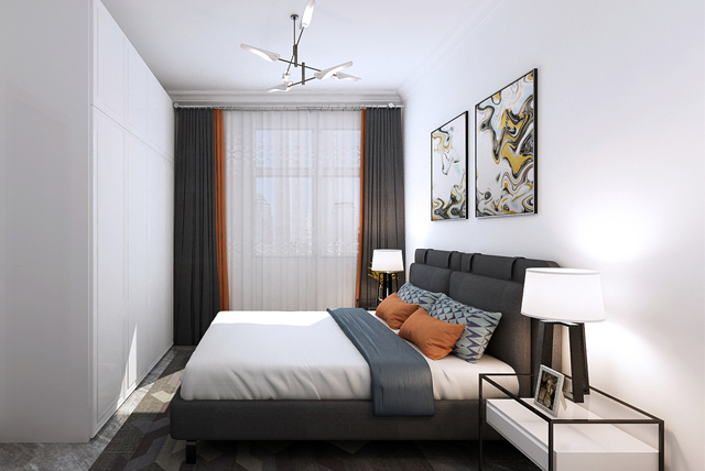 客廳圍繞金色茶幾和金色背景裝修奠定復(fù)古優(yōu)雅的基調(diào),從窗簾蔓延到凳腳,燈具,配合簡(jiǎn)約流程的線條,讓空間富有靈動(dòng)的魅力。餐廳足夠簡(jiǎn)約,顏色和客廳相應(yīng)加強(qiáng)了空間雕塑感,墻上的裝飾畫,為空間增添了一絲復(fù)古的感覺。華貴的金黃色星星點(diǎn)點(diǎn)地活躍在空間中。伴著灰色進(jìn)入臥室,色彩的分割讓空間有了明確的功能分區(qū)。