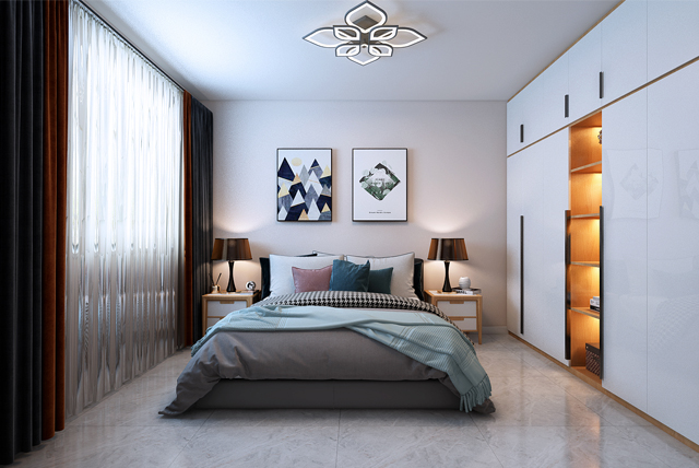客廳布藝的沙發(fā),隨意鋪陳的棉麻織物,鐵藝時尚的茶幾...不同材質(zhì)的肌理感被空間所包容。想和你蝸居在沙發(fā)上追泡沫劇的小心思,無需遮掩。 餐廳區(qū)域不僅有如臨自然的清新感,還能舒緩情緒營造放松的用餐氛圍,絕對是整個空間的記憶點。主臥簡潔美觀、溫馨雅致,灰色床單顯得十分柔軟舒適。頂天立地式的白色衣柜明凈雅致,簡約不簡單。